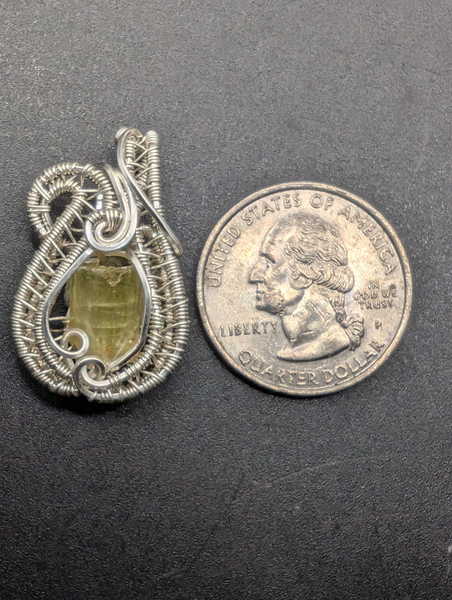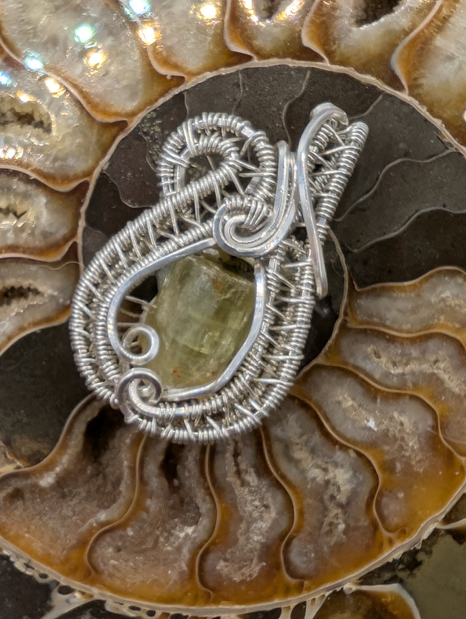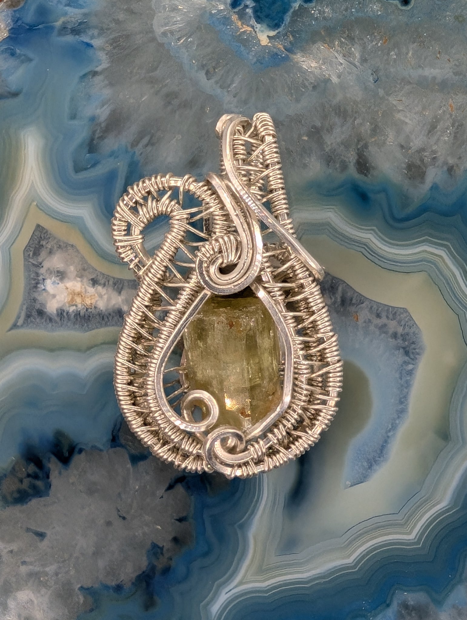 Apatite crystal wrapped in sterling silver