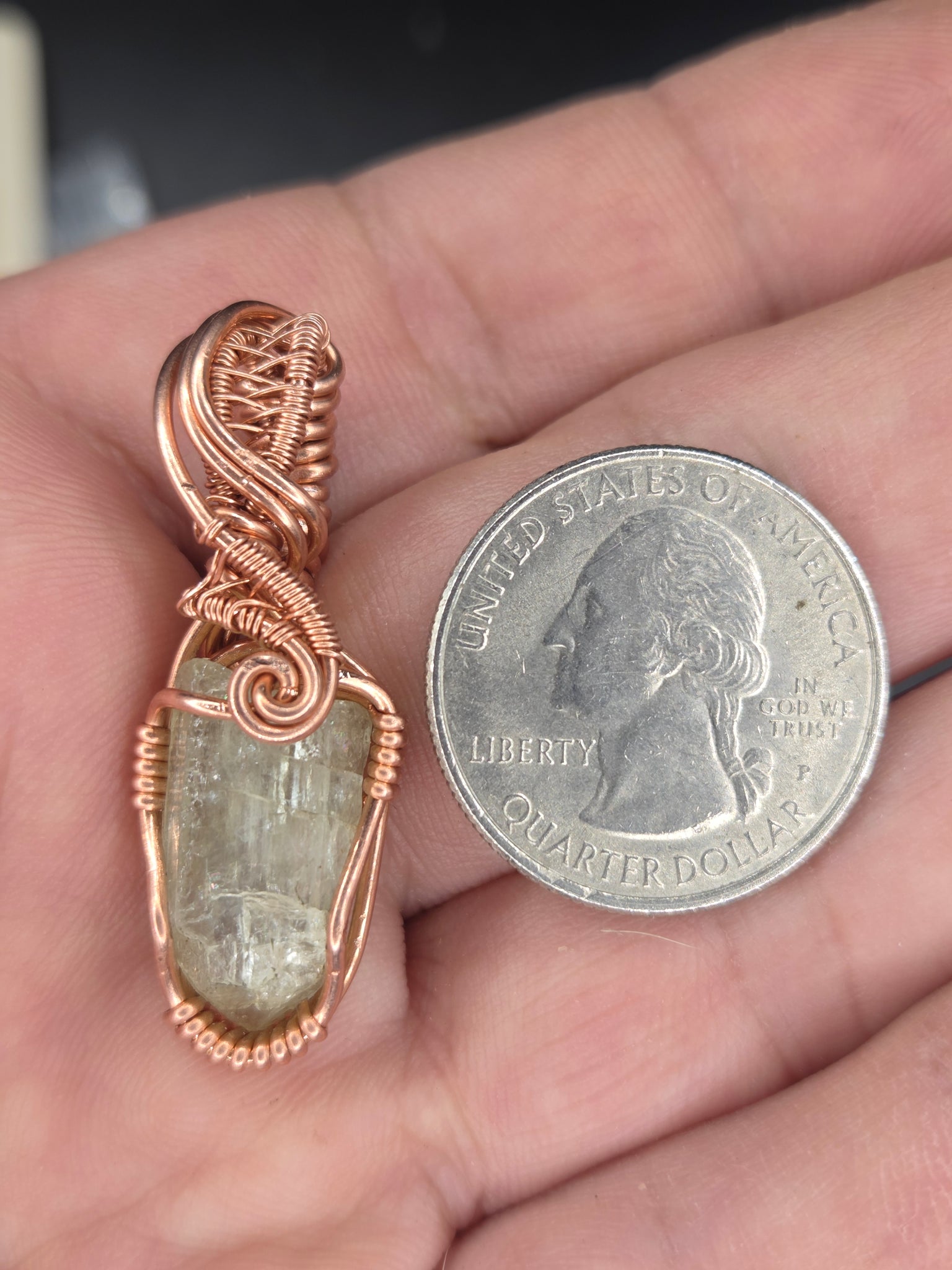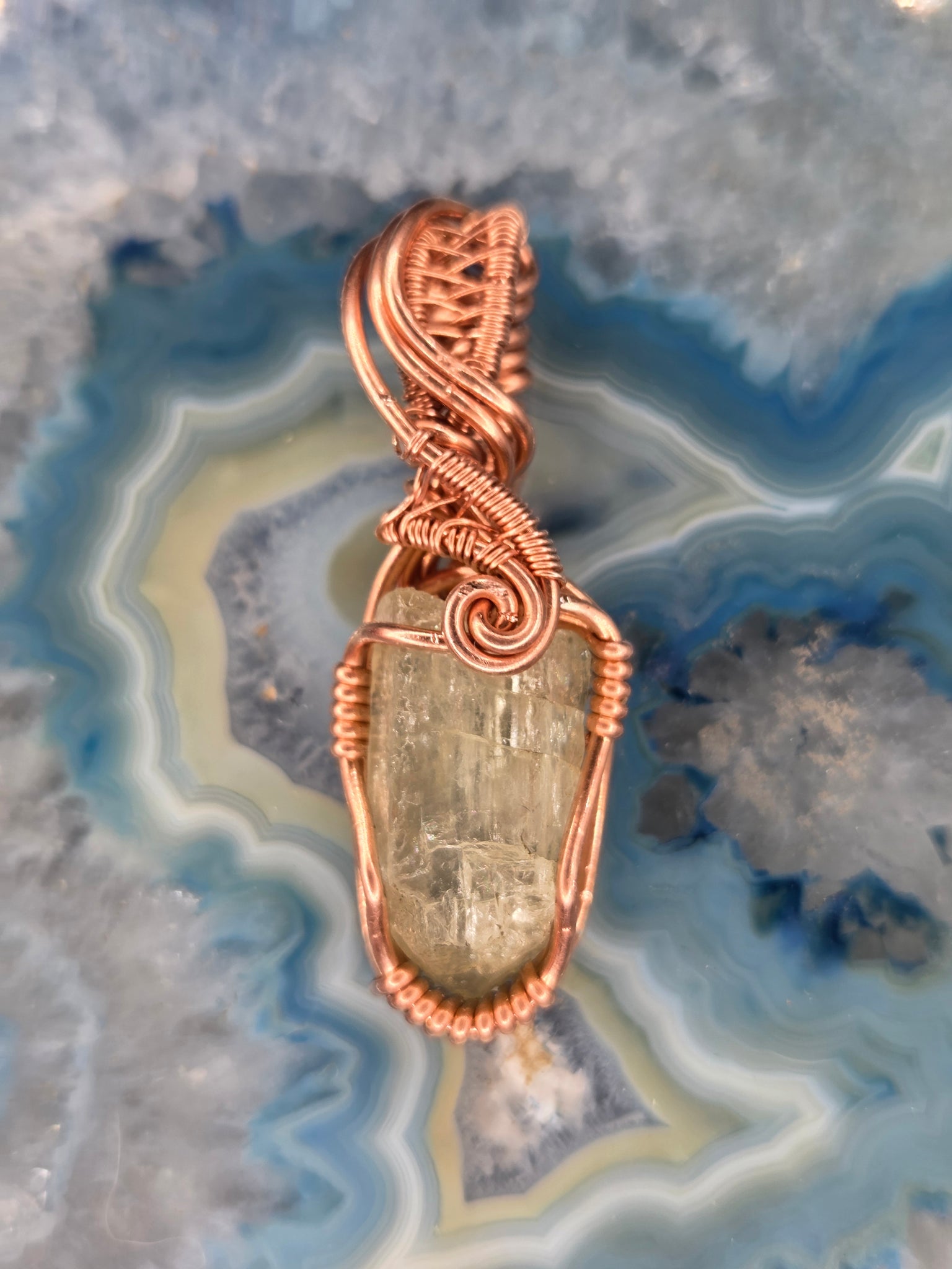 Apatite crystal wrapped in copper