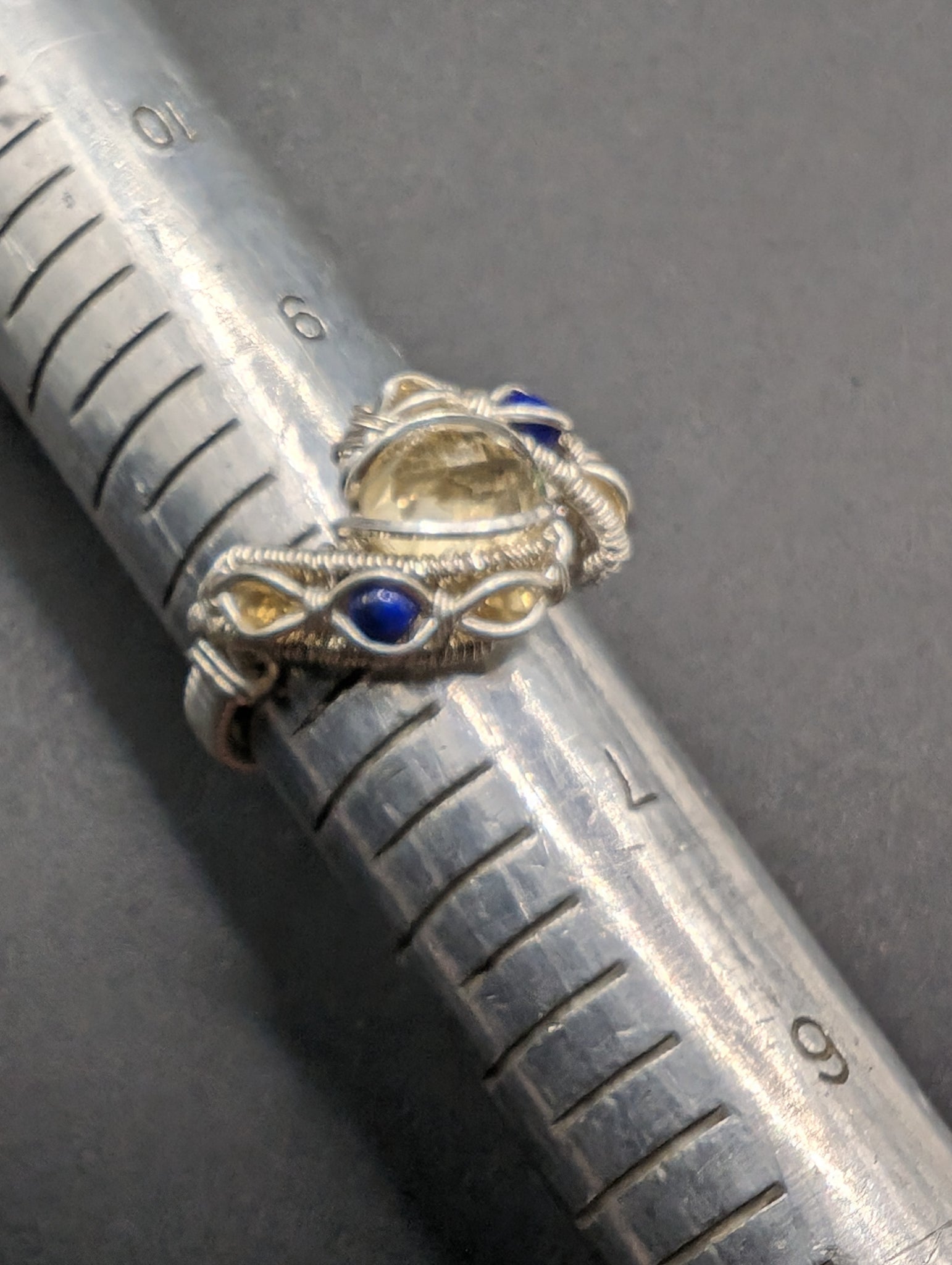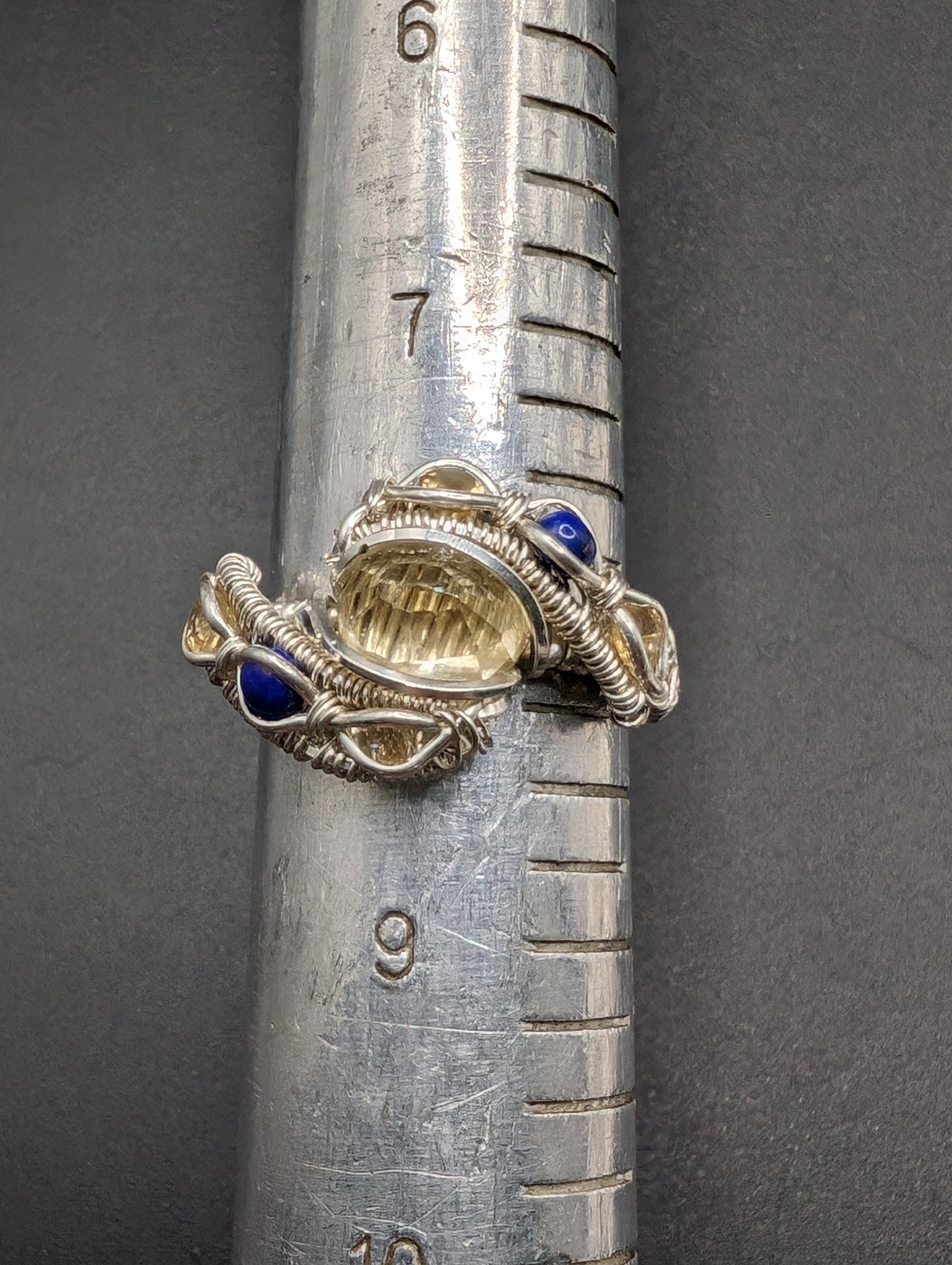 Citrine wrapped in sterling silver with accents in Citrine and Lapis