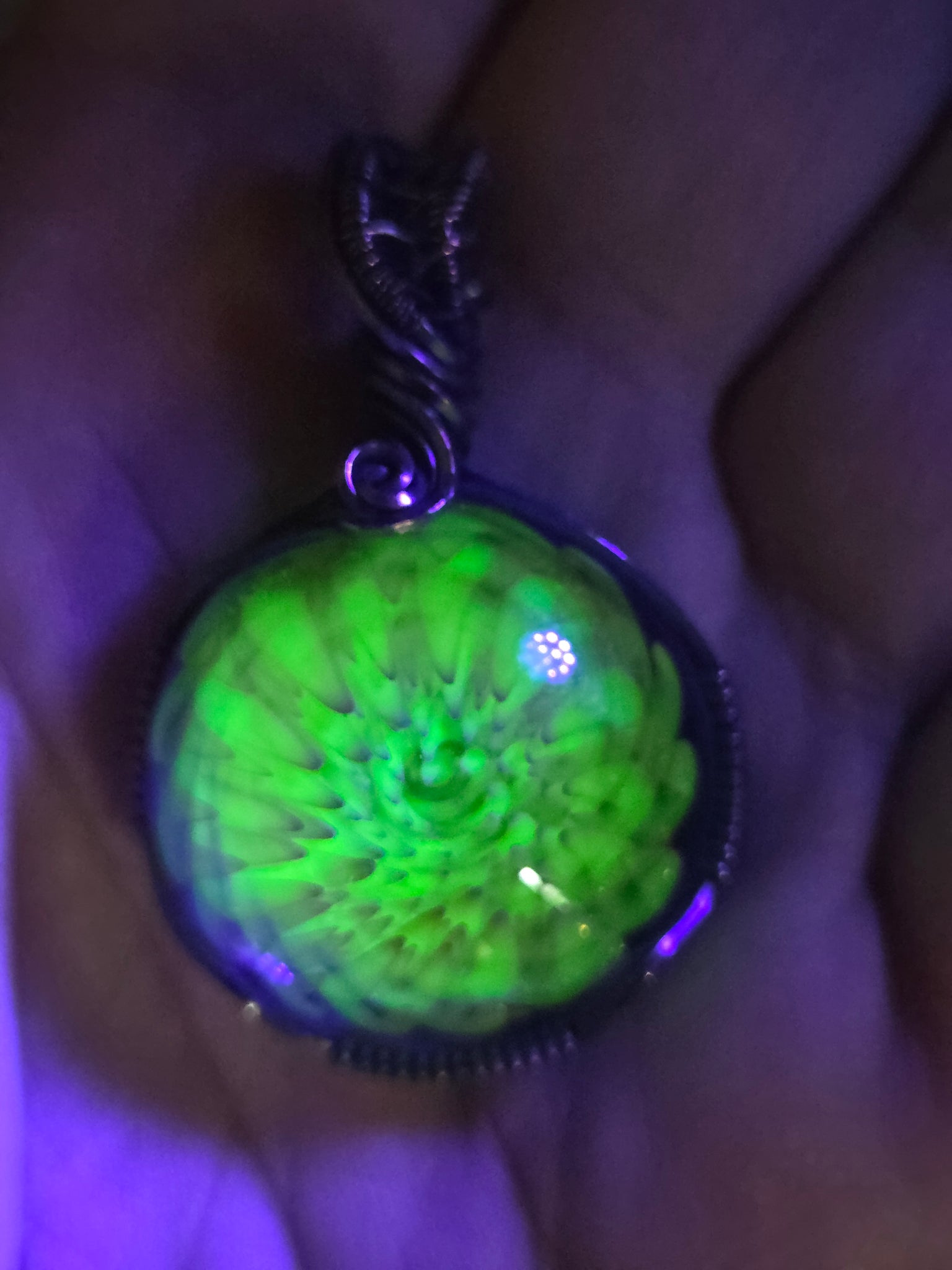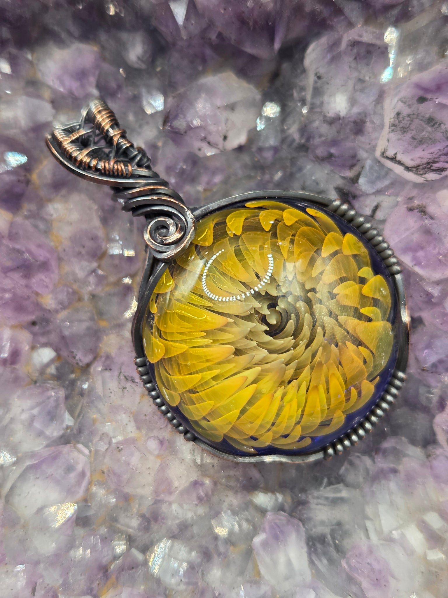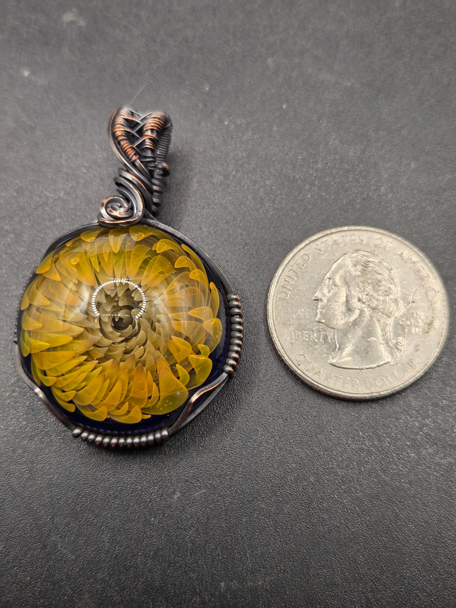 UV recative borosilicaye glass wrapped in oxidized copper (glass artist/ SodaPop Glass)