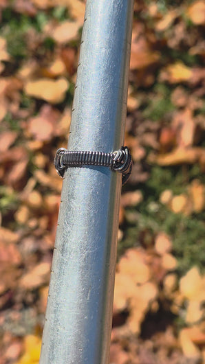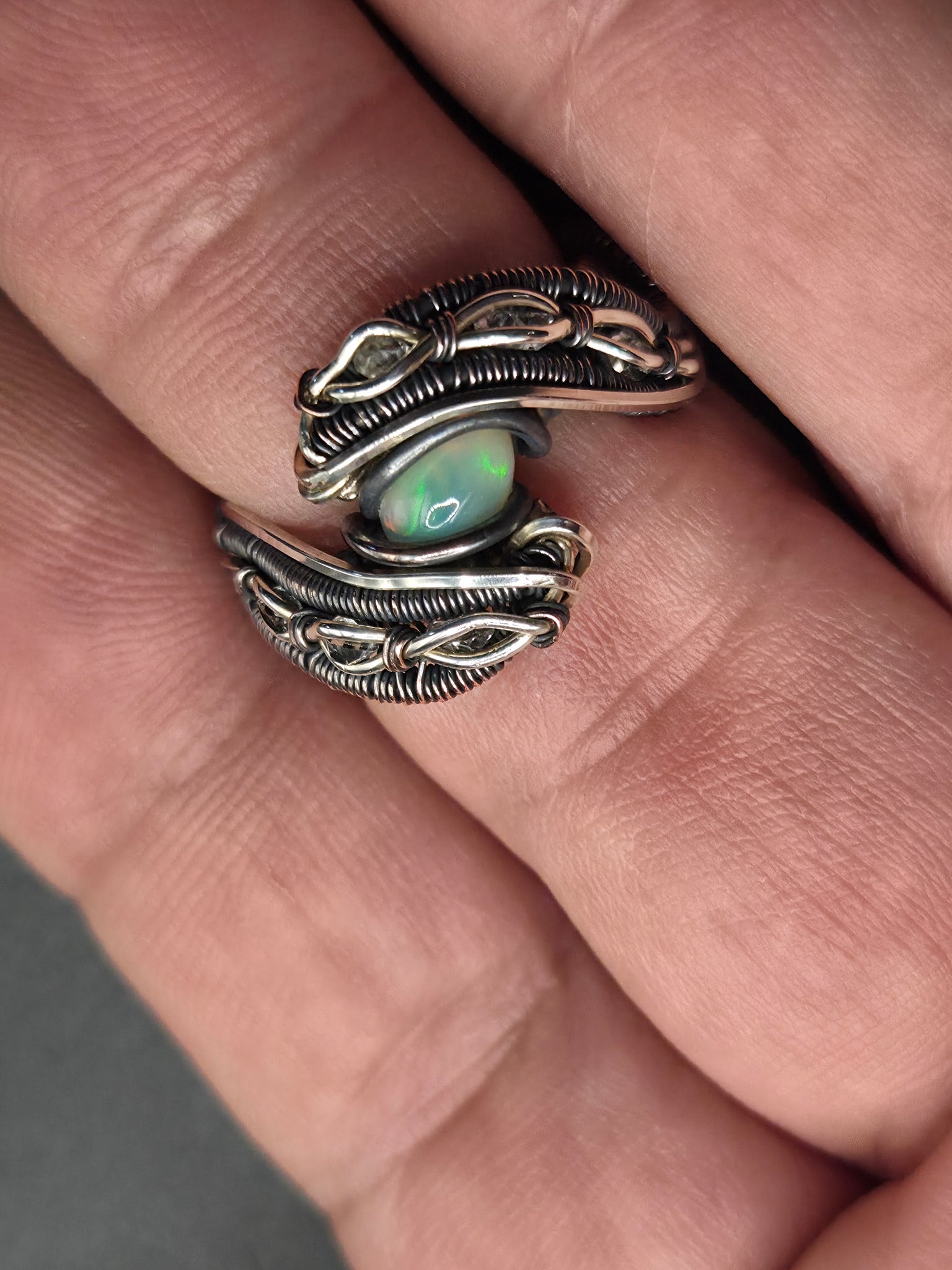 Opal wrapped in oxidized copper amd sterling silver with accents in Diamond Quartz