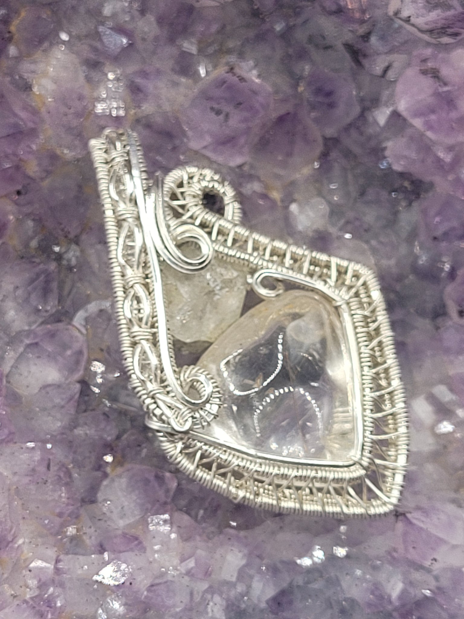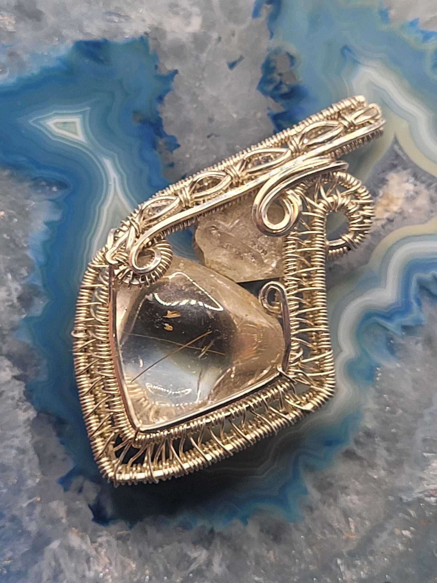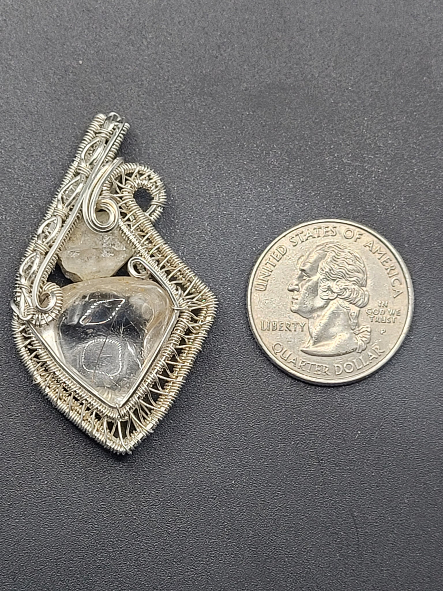 Rutilated Quartz & Herkimer Diamond* wrapped in sterling silver with Diamond Quartz accents